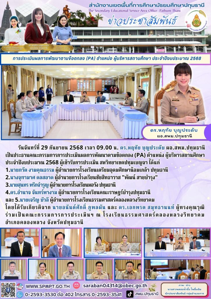 การประเมินผลการพัฒนาตามข้อตกลง (PA) ตำแหน่ง ผู้บริหารสถานศึกษา ประจำปีงบประมาณ 2568 ผู้เข้ารับการประเมิน สหวิทยาเขตปทุมเบญจา