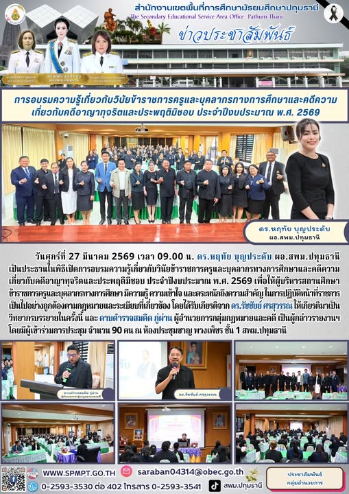 พิธีเปิดการอบรมความรู้เกี่ยวกับวินัยข้าราชการครูและบุคลากรทางการศึกษาและคดีความเกี่ยวกับคดีอาญาทุจริตและประพฤติมิชอบ ประจำปีงบประมาณ พ.ศ. 2569